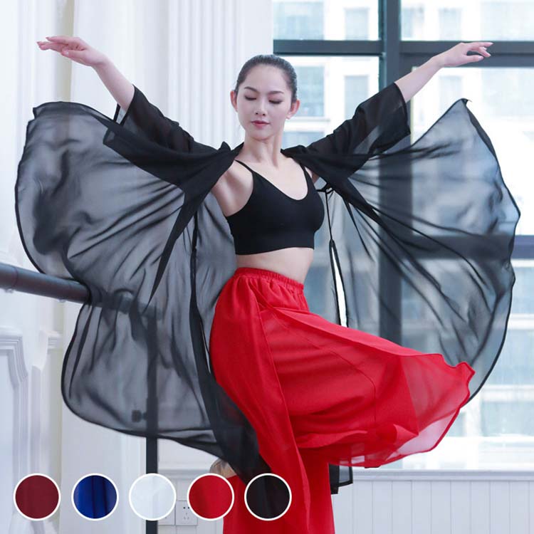レッスン着 チャイナ服 レディース用古典舞踊ダンス衣装 前開き ブラウズ ロング羽織 オーバー羽織コート ロングシフォン羽織 中国民族ダンス衣装 紗 サイドスリット 大きめ
