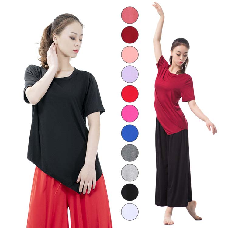 フィットネスウエア 半袖Tシャツ ゆったりヨガバレエウエア モダールダンスウエア 不規則ブラウス 普段着 レディース大人ダンス衣装 社交ダンス衣装 練習着レッスン着
