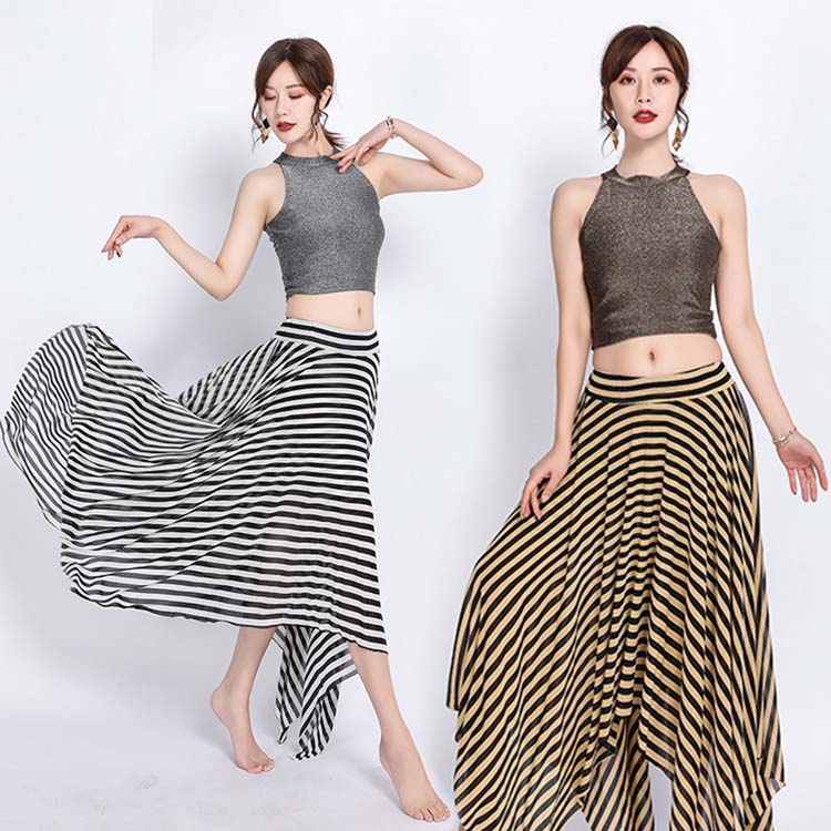 袖なしブラウス+ロングスカート 上下セットアップ ラメ入りトップス 不規則 フレア 社交ダンス レディースベリーダンス衣装 舞台ステージダンス衣装 練習着レッスンウエア 広がる