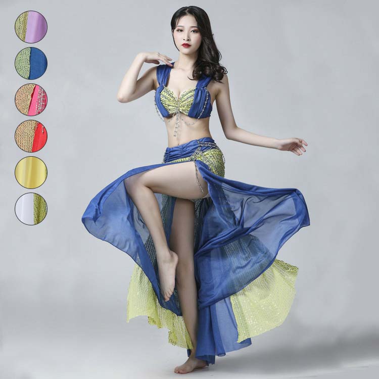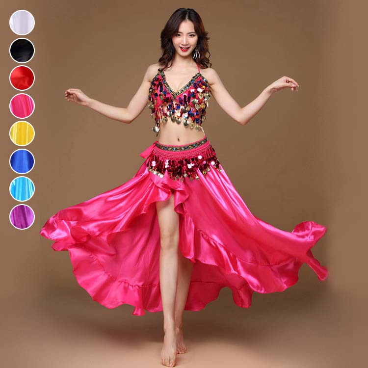 大人 ラテン ハイスリット イベント 8色 余興 Belly ダンス 衣装 dance ブラジャー スパンコール BAR 裾フリル セクシーコスチューム レッスン着 ブリンブリン 社交ダンス 3点セッ
