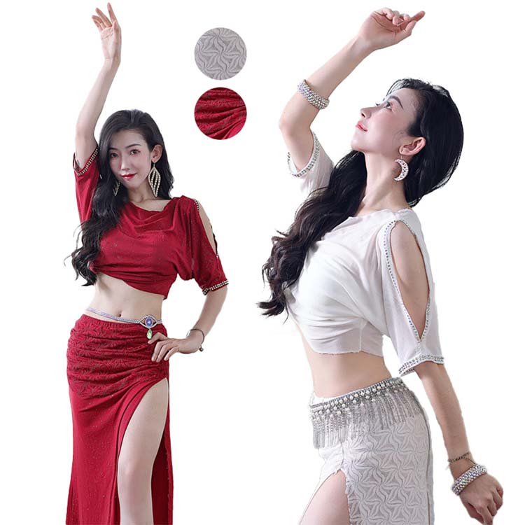 ひらひら 練習着 ラメ入 黒 衣装セット 紐調整可 レディース ピンク 不規則 セットアップ ダンスウェア 赤 レッスンウェア 社交ダンス衣装 スリットスカート セクシー ベリーダンス