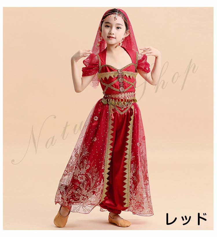 アラジン レッスン着 ショート丈トップス ベール 小物 ジャスミン風 ステージ衣装 ベリーダンス ダンス練習着 アラジン ハロウィン 花 ロング アラジンパンツ 女の子 半袖 コスプレ