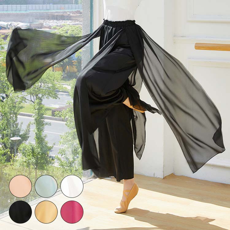 シフォンガウチョパンツ XL リボン スカーチョ 春夏 ピンク 新作 サルエル 白 パンツ ワイドパンツ パンツ バレエ 大人用 配色 エレガント ロング レッスンウェア 黄 ひらひら