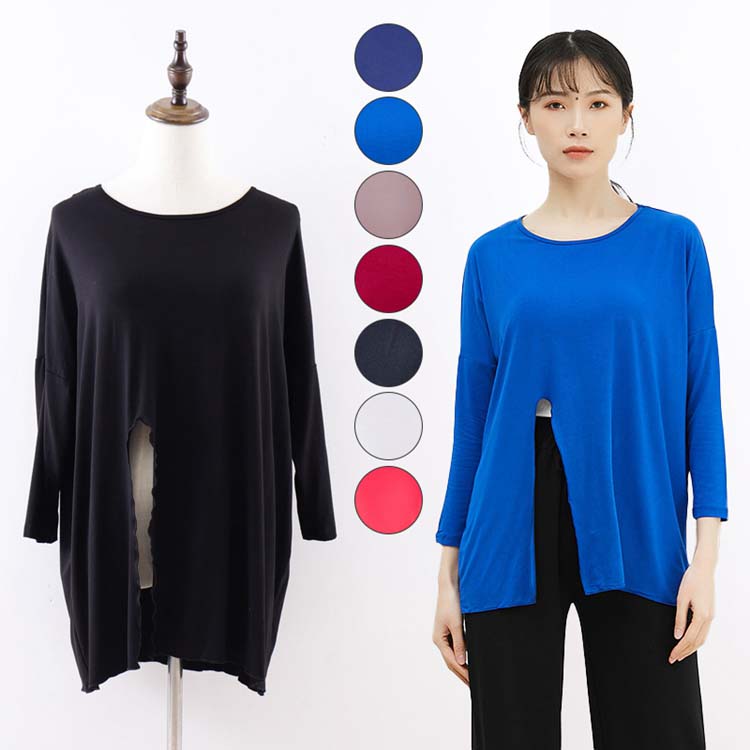 バレエダンスウェア トップス レディース長袖Tシャツ ゆったり ストレッチダンス練習着レッスンウェア ラテン古典ダンス衣装 モダンダンス衣装 ヨガウェア 普段着 前スリット