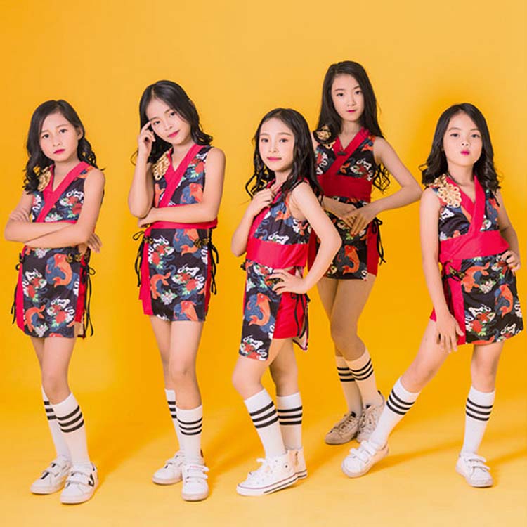 中華 和風 エスニック柄 おしゃれ 130 発表会 チャイナ風 ダンス ダンス ダンスウェア 袖無し 腰紐 ダンス衣装 民族風 ジャズ ステージ衣装 花 140 着物風 衣装 170 ミドル丈ブラウス