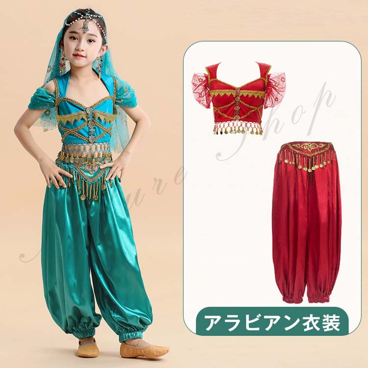 衣装 コスチューム ベリーダンス アラビアンCOSPLAY 身長95~150cm 子供 アラビアン衣装 アラジン 女の子 半袖トップス お姫様 レッスン着 レッスンウェア コスプレ衣装 余興