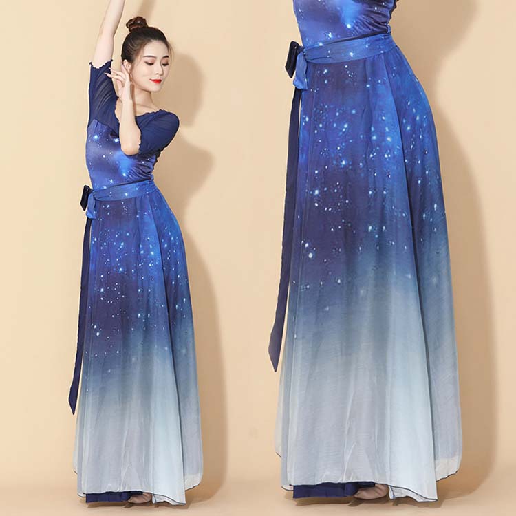 シリーズダンス衣装 中国踊り 表裏兼用 エレガント スカート 大人 レディース 大きい裾 星空 古典舞踊 練習着 レオタード 飄逸 リバーシブル ダンス モダンダンス 巻きスカート