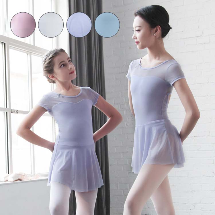 スカート付き ショート丈スカート エレガント 半袖 レオタード レオタード バレエ 体操 紫 バレエウェア 白 美シルエット 衣装 チュール切替 大人用 練習着 2 ピンク