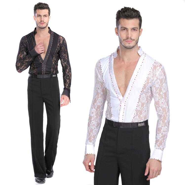 レースブラウス 男性用モダンドレス 舞台ステージ演出ウエア リベット インターナショナルダンスシャツ 上着ブラウス ボディシャツ メンズ社交ダンス衣装 ラテンダンス衣装