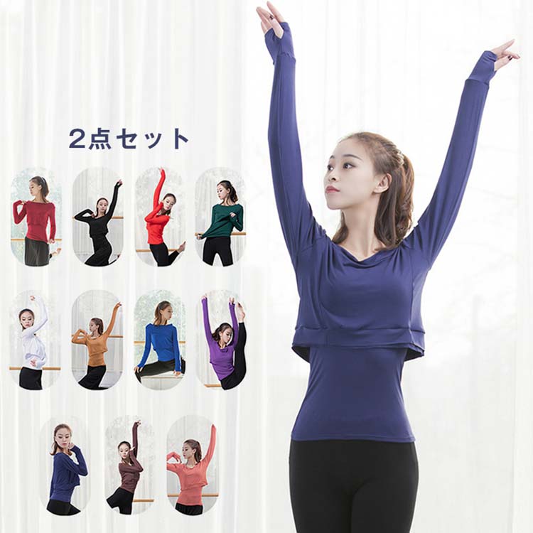 社交ダンスウェア レディース大人舞台ダンス衣装2点セット モダールtシャツ インナー付 長袖 レッスン着 ダンス衣装 ラテン 古典 バレエ ヨガダンス衣装 練習着