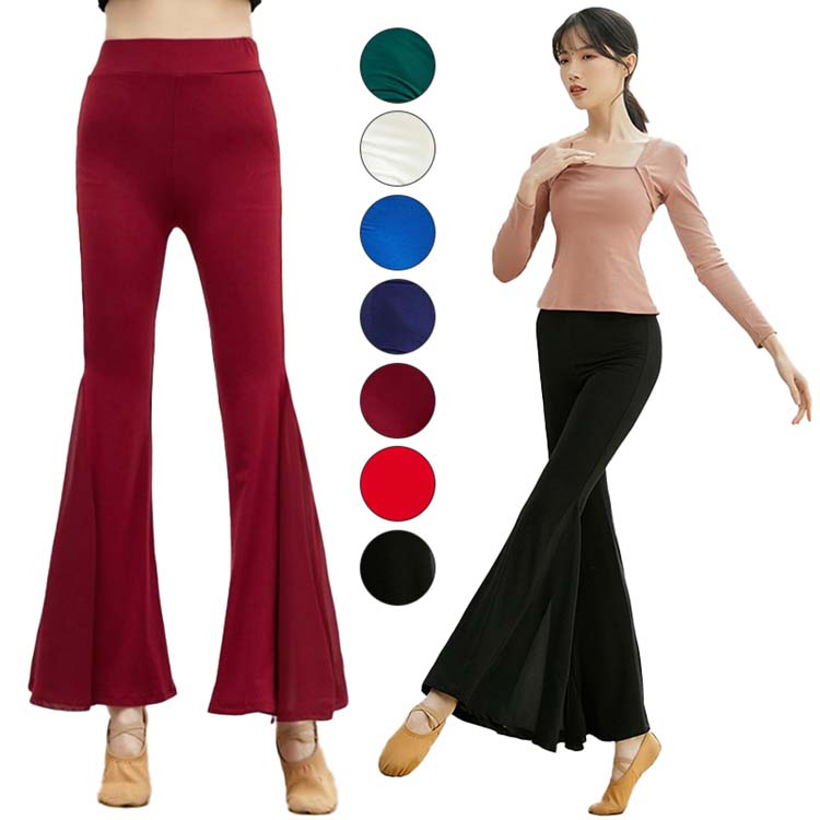 衣装 長ズボン ストレッチ スリットフレアパンツ シフォン切替ガウチョパンツ ヨガバレエラテン古典ダンスパンツ パンタロンパンツ ボトムス 舞台練習着レッスンウェア演出服