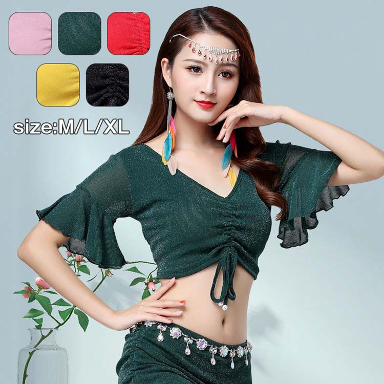 ベリーダンストップス ベリーダンス衣装 カジュアル ステージ衣装 社交ダンス衣装 トップス ダンスウェア コスプレ イベント 女性用 練習着 単品 グリーン レッド