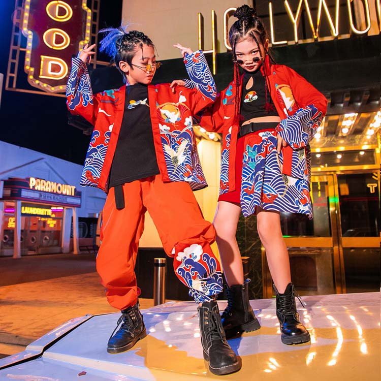 ジャズ 女の子 着物 モード 130 原宿系 ストリートダンス ダンスウェア 和風 衣装 ミニスカート 鶴 発表会 子供舞台衣装 ステージ衣装 トップス 和柄 140 男の子 HIPHOP 170