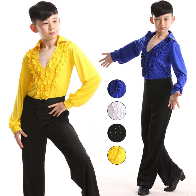 男の子 DS演出服 ボディシャツ 練習着 長袖ブラス+長ズボン上下セット ベリーダンス衣装 幼稚園~ジュニア社交ダンスウエア 舞台ステージ衣装 子供ラテンダンス衣装 Vネック