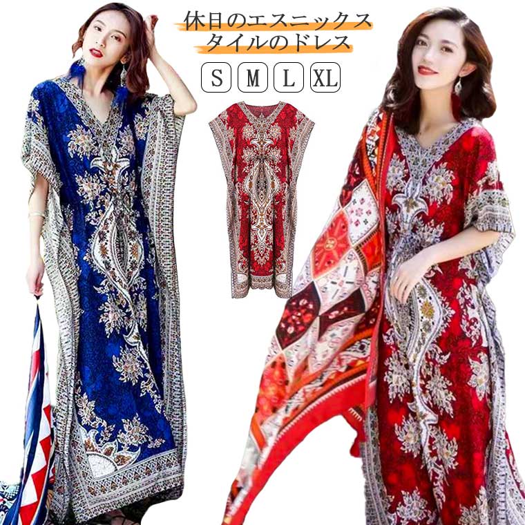 マキシワンピース ガラベーヤ風 女性用 トップス シャツ レディース ワンピース アジアン 半袖 ファッション 海 トラベル 出張 旅行 大人気 エスニック衣装
