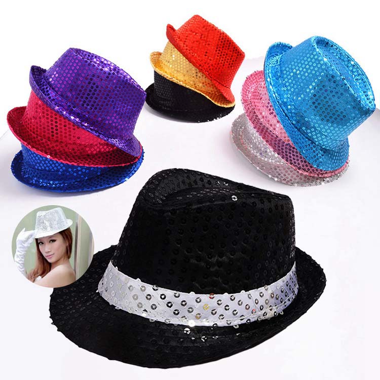 発表会演出道具 舞台用ダンス帽子 イベント学園祭子供用スパンコール 11色 キャップ コスプレ帽子 大人舞台帽子 ジャズダンス スパンコール帽子