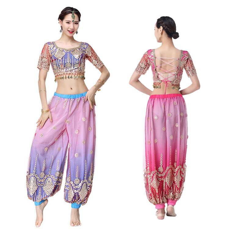 アラビアン衣装 ショート丈トップス 刺繍 コスチューム 上下2点セット 半袖 セクシー系 コスプレ衣装 ブルー プリンセス仮装 変装 背中レッスアップ 孔雀 サルエル レディース