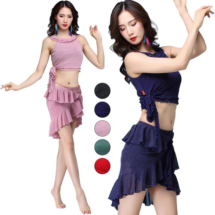 5色 トップス ミニスカート レッスン着 セクシー社交ダンス衣装 古典ダンスウエア 大人ベリーダンス衣装上下二点セット 練習着 舞台ステージ演出服 レッスンウェア