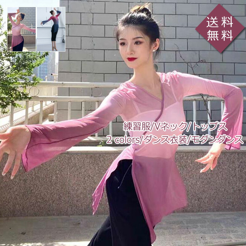 ダンス衣装 レディース 中国風古典民族ダンス衣装 ダンスウェア チャイナ服 モダンダンス 練習服 舞台服 Vネック 長袖 トップス きれいめ おしゃれ