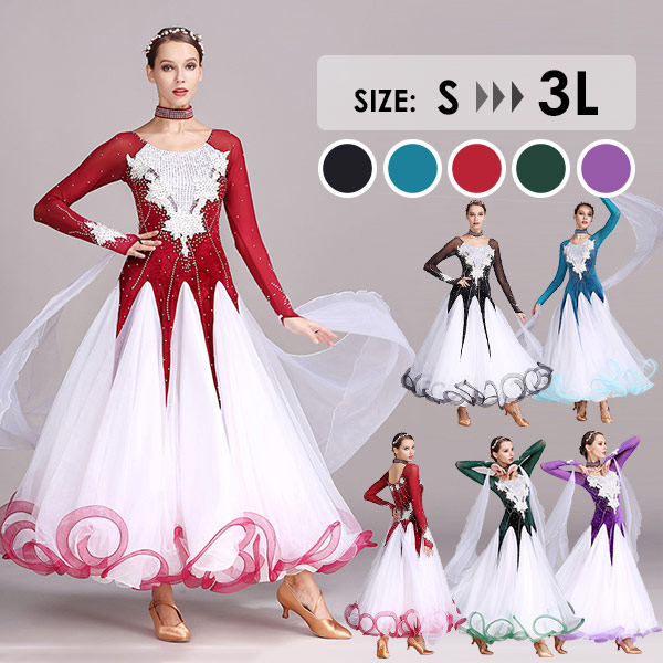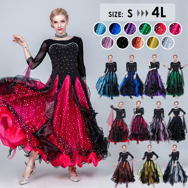 社交ダンス モダンドレス 社交ダンス衣装 大きいサイズ 広がる裾 ダンス発表会 練習着 演出用 大量注文にも対応しています