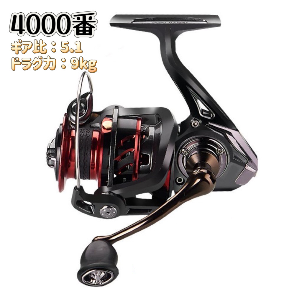 タイムセール フィッシング リール スピニングリール 4000番 釣り 遠投 軽量 ギア比5.1:1 湖 川 淡水釣り 海釣り ハンドル左右交換 6+1 最大ドラグ力:9 アウトドア 釣り具