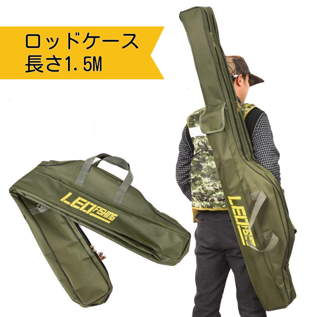 材質:420Dオックスフォード カラー:グリーン、ブラック 長さ:1.5M 重量:約800gスポーツ アウトドア フィッシング バッグ ケース ロッドケース