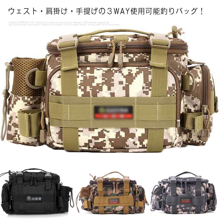 釣りバッグ フィッシングバッグ 3WAY 多機能 大容量 軽量 アウトドアバッグ ツーリングバッグ 釣り ショルダーバッグ ワンショルダー ウエストバッグ ドリンクホルダー 父の日 プレゼント