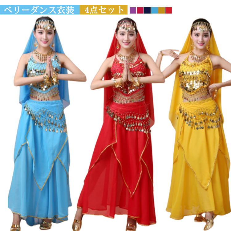 ステージ衣装 衣装 4点セット ベリーダンス ダンス エジプト ベール 民族衣装スポーツ アウトドア 体操 ダンス ベリーダンス 衣装セット