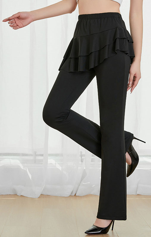ヒップカバー ダンスパンツ ジャズパンツ ヨガパンツ ストレッチ フレア ウェア 美脚 スカート付 美脚パンツ 体型カバー スカート