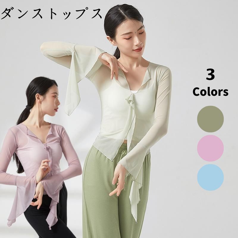 ダンス レッスン着 シアー プルオーバー バレエ トップス クラーデション 社交ダンス 練習着 コンテンポラリー ヨガウェア レディース ダンスウェア 古典舞踊衣装 民族ダンスウェア