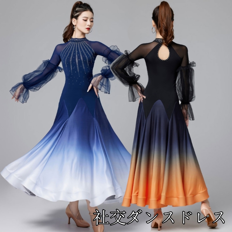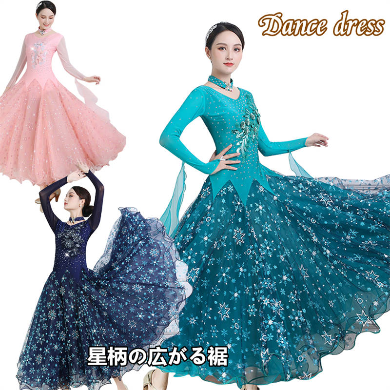社交ダンス レディース ダンスドレス 衣装 ワルツ ワンピース イベント 大きい裾 モダン ドレス 社交ダンス衣装 広がる裾 スタンダード レッスン着 演出用 高級感 踊りドレス 大人気