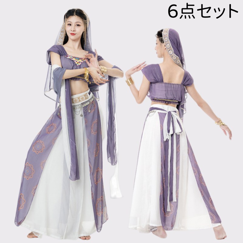 ベリーダンスセット衣装 6点セットイベント 女性 レッスン着 練習着 インドダンス アラビアン 民族衣装 ハロウィン コスプレ ハロウィン仮装コスチュームベリーダンス衣装