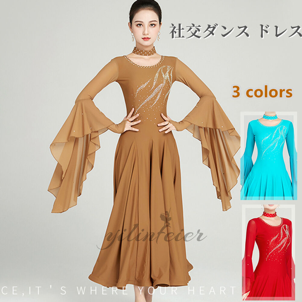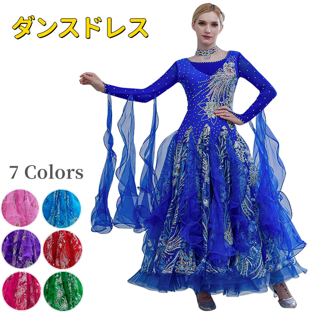 社交ダンス レディース ダンスドレス 衣装 ワルツ ワンピース イベント 大きい裾 モダン ドレス 社交ダンス衣装 広がる裾 スタンダード レッスン着 演出用 高級感 踊りドレス 大人気