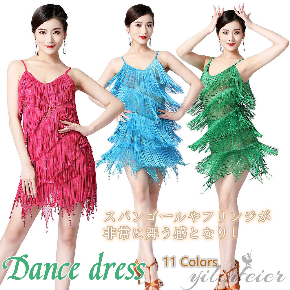 ラテン衣装 ラテンドレス ラテンダンスワンピース チャチャ サルサ サンバ ルンバ タンゴ パソドプレ衣装 タッセル ドレス レディース タンゴ 演出用 舞台ウエア ダンスドレス 練習着