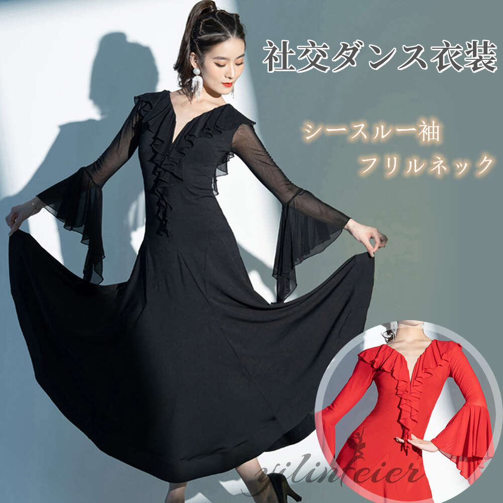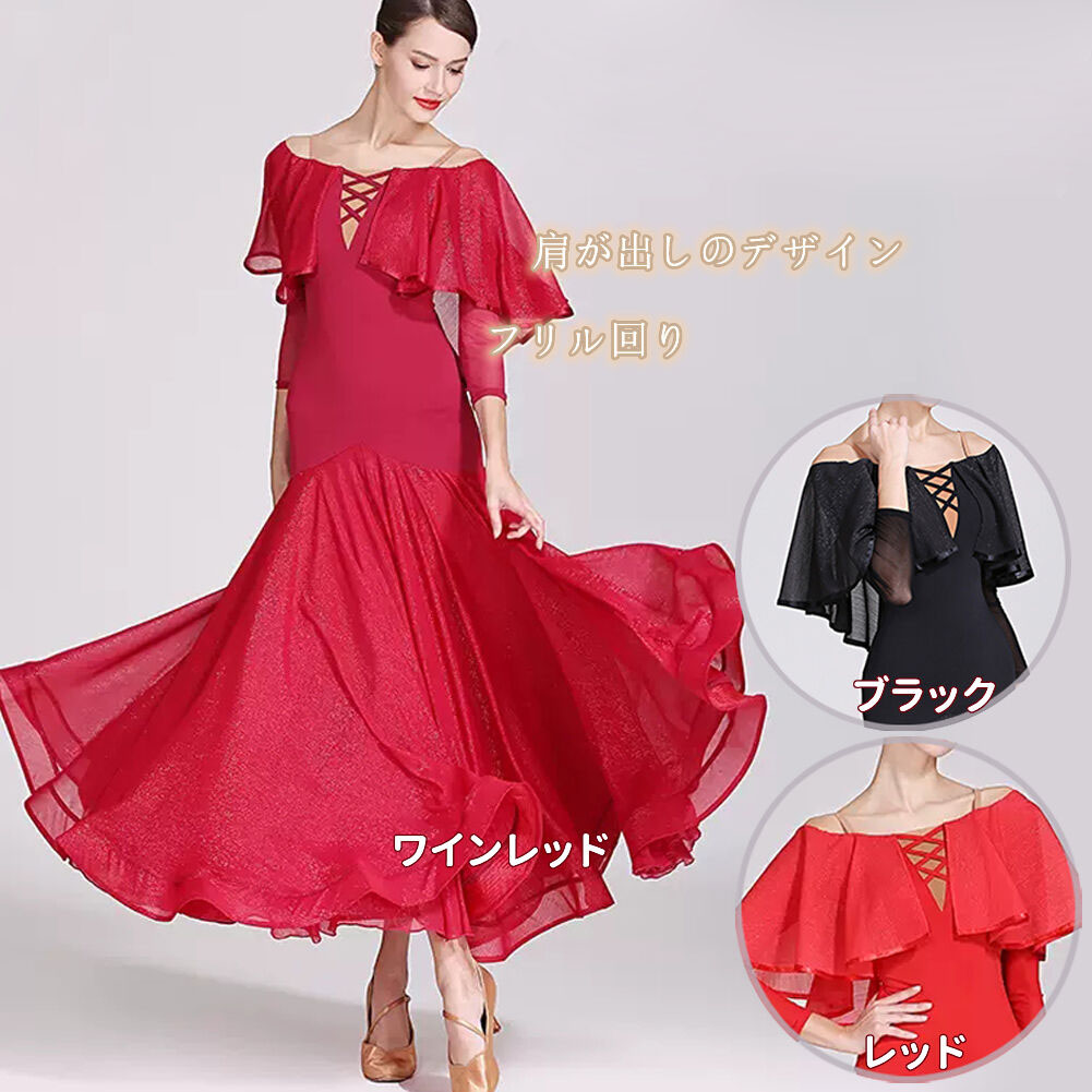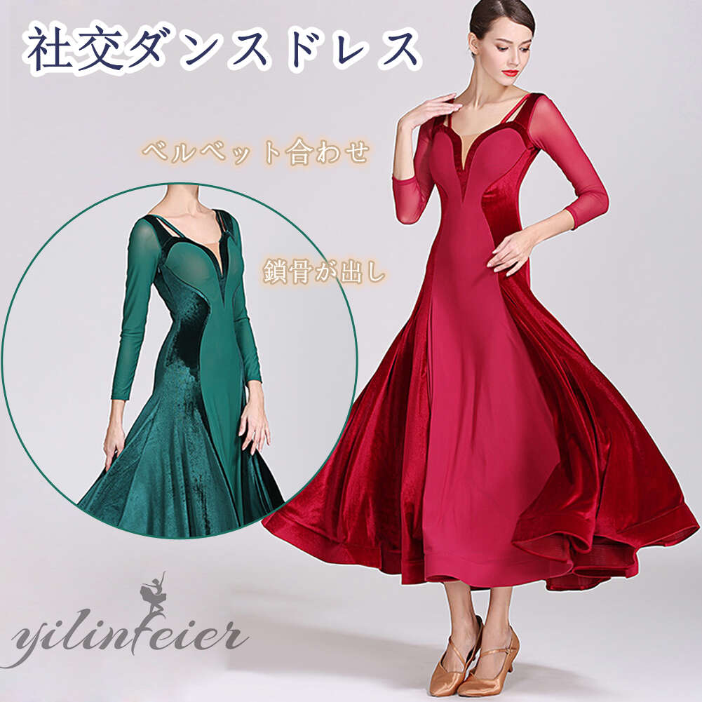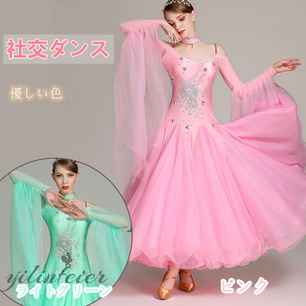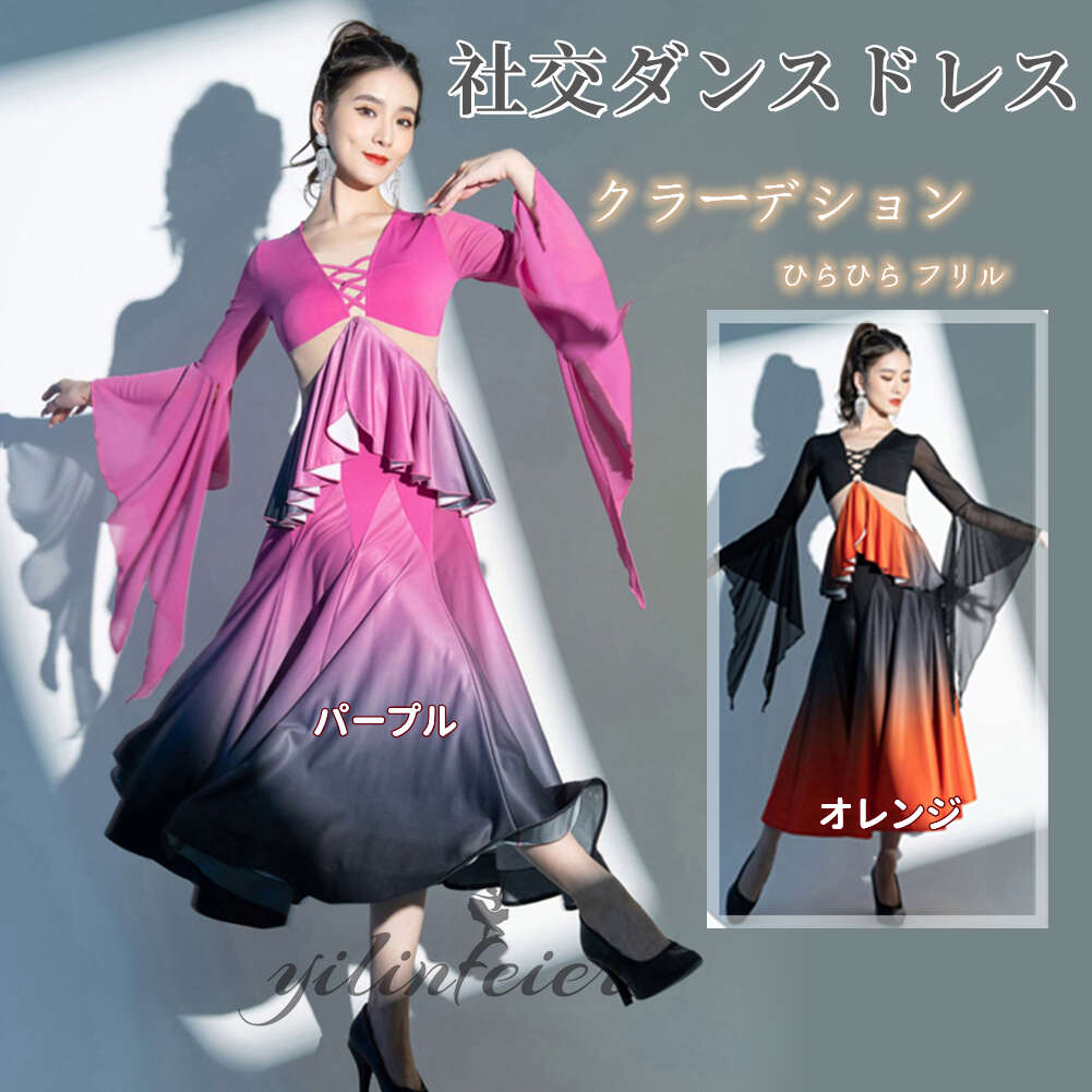 社交ダンス レディース ダンスドレス 衣装 ワルツ ワンピース イベント 大きい裾 モダン ドレス 社交ダンス衣装 広がる裾 スタンダード レッスン着 演出用 高級感 踊りドレス 大人気