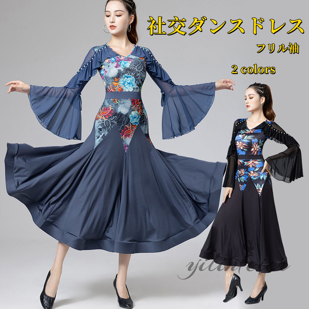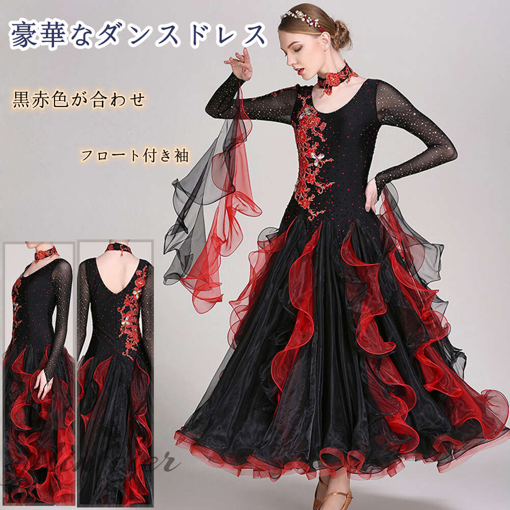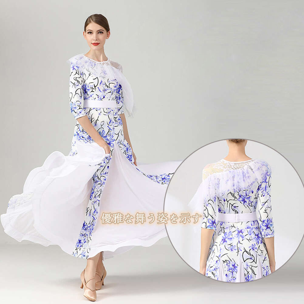 スタンダードドレス 社交ダンス レディース ダンスドレス レディース 競技ダンス 発表会 コンテスト コンクール エレガント 大合唱衣装 フラワー衣装 モダンダンス 衣装 開場ドレス