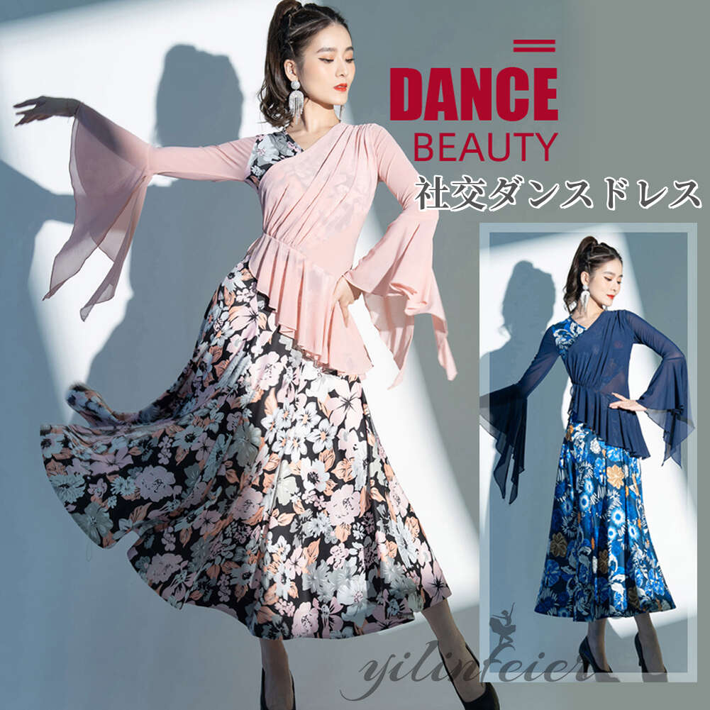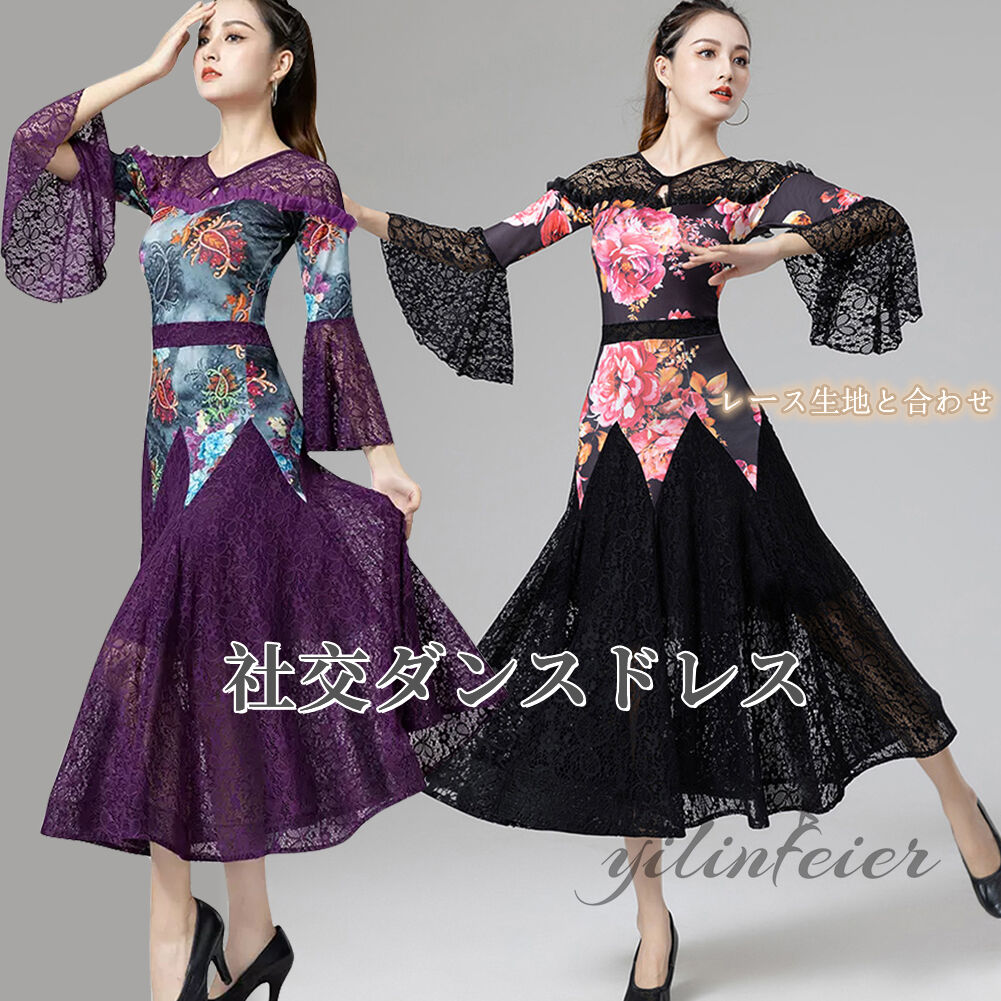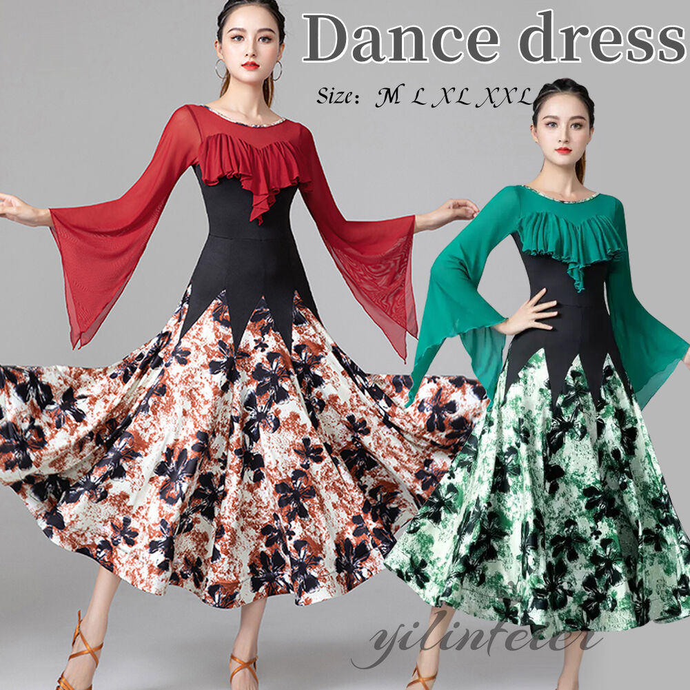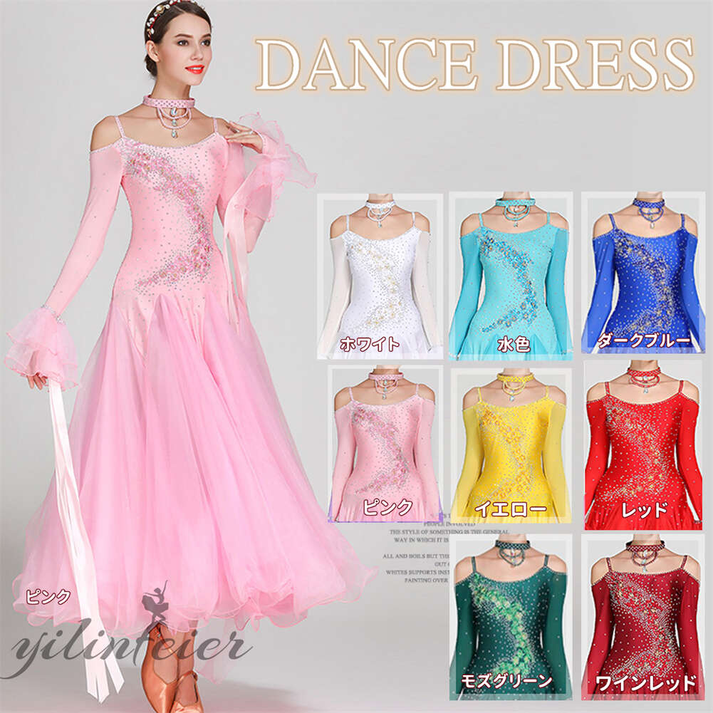 スタンダードドレス 社交ダンス レディース ダンスドレス レディース 競技ダンス 発表会 コンテスト コンクール エレガント 大合唱衣装 フラワー衣装 モダンダンス 衣装 開場ドレス
