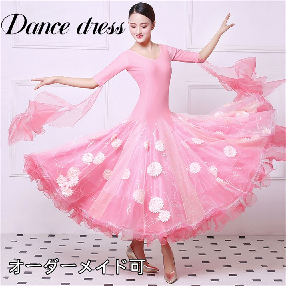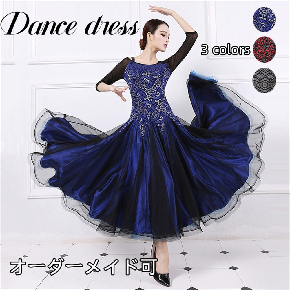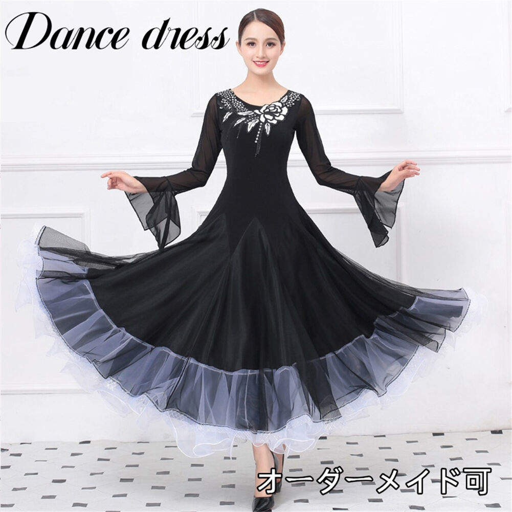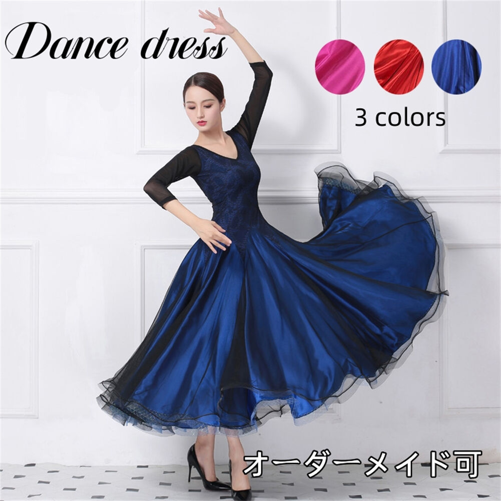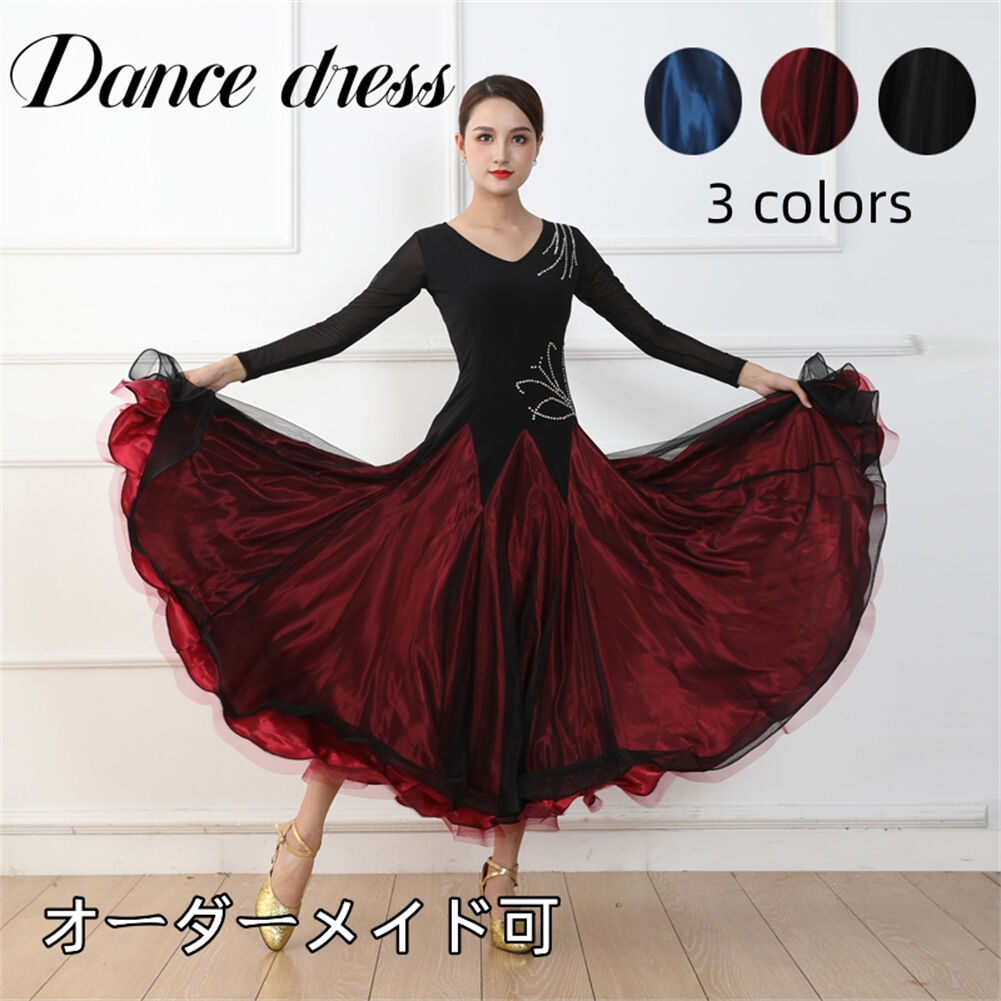 社交ダンス レディース ダンスドレス 衣装 ワルツ ワンピース イベント 大きい裾 モダン ドレス 社交ダンス衣装 広がる裾 スタンダード レッスン着 演出用 高級感 踊りドレス 大人気