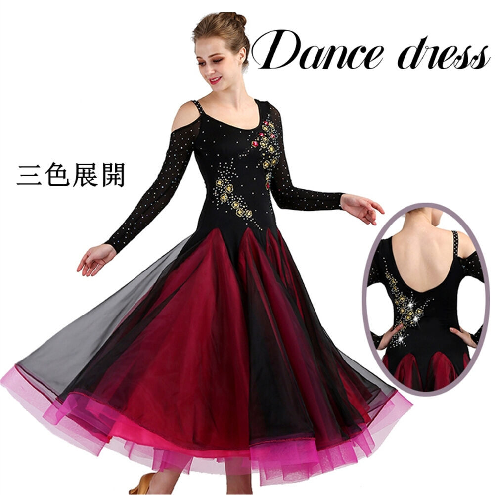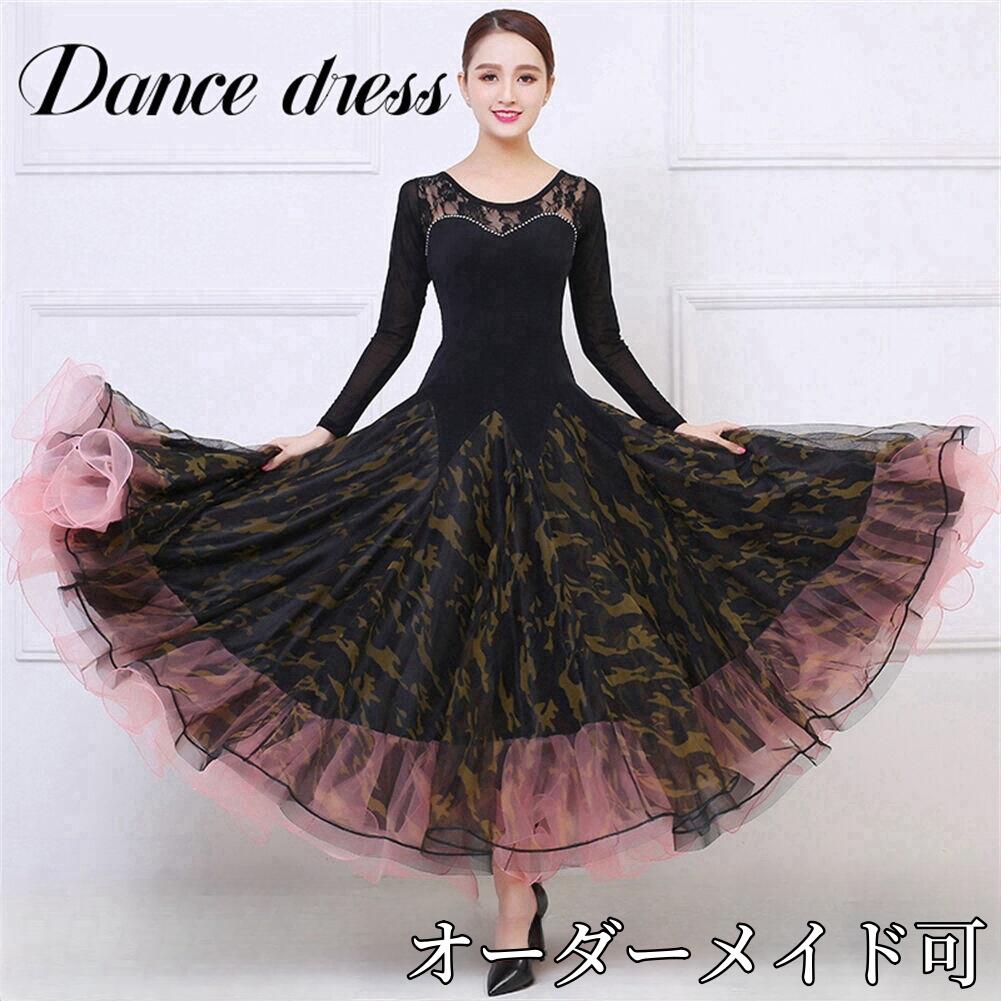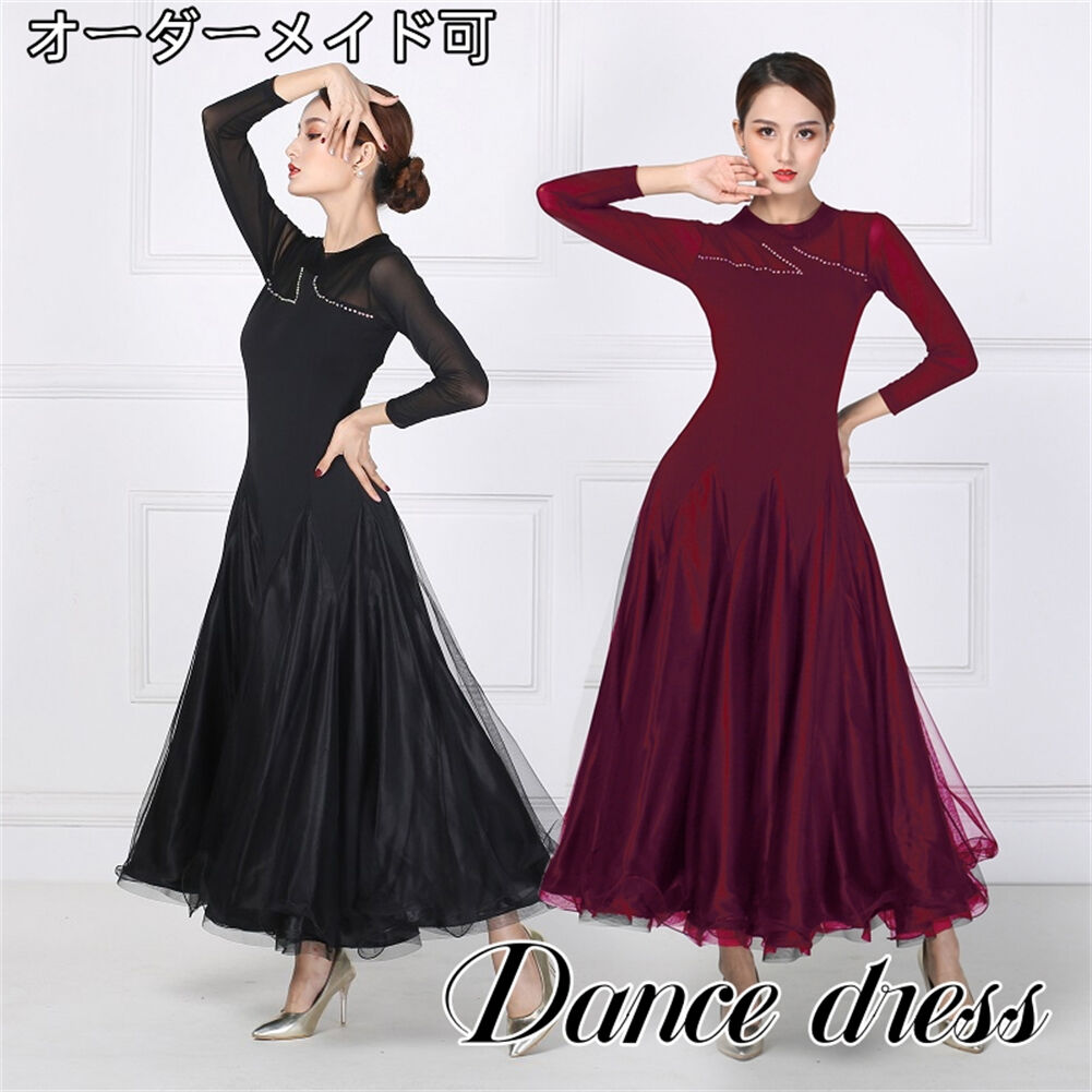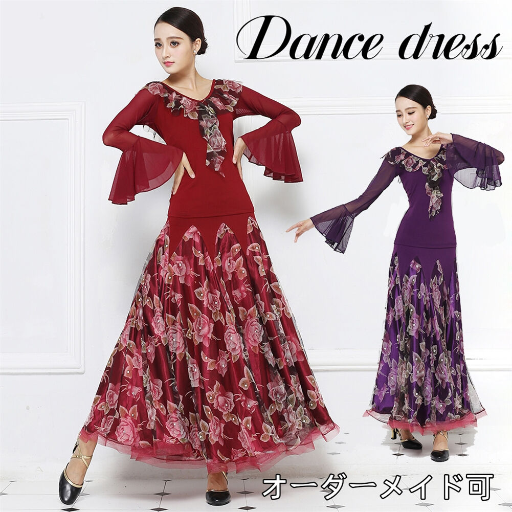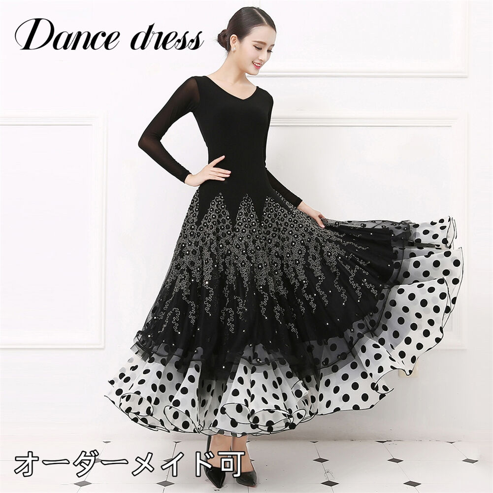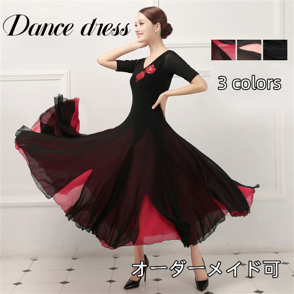 社交ダンス レディース ダンスドレス 衣装 ワルツ ワンピース イベント 大きい裾 モダン ドレス 社交ダンス衣装 広がる裾 スタンダード レッスン着 演出用 高級感 踊りドレス 大人気