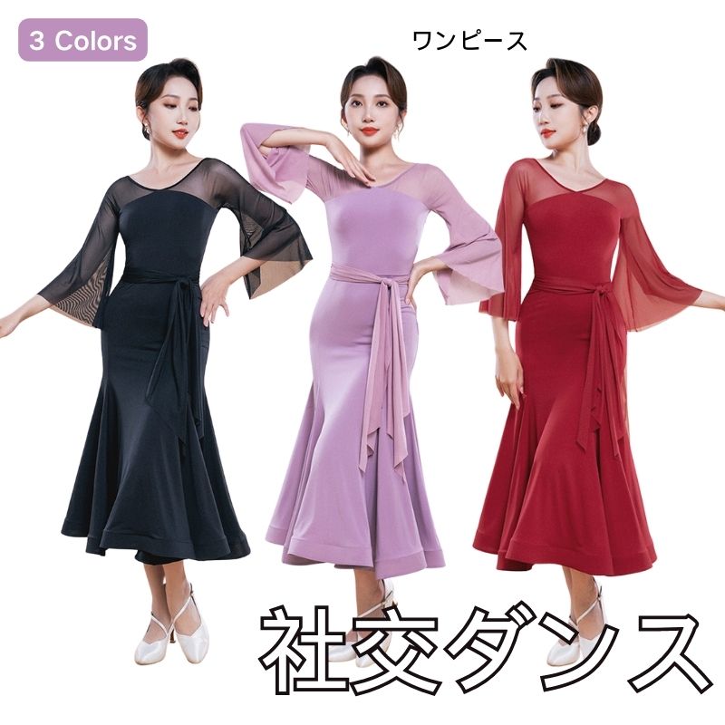 社交ダンス レディース ダンスドレス 衣装 ワルツ ワンピース イベント 大きい裾 モダン ドレス 社交ダンス衣装 広がる裾 スタンダード レッスン着 演出用 高級感 踊りドレス 大人気