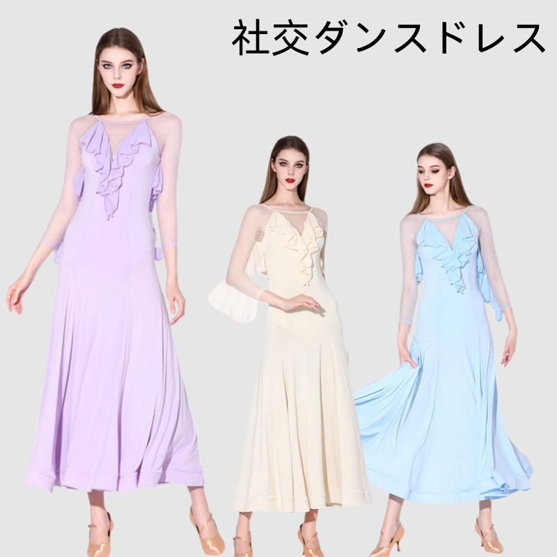 スタンダードドレス 社交ダンス レディース ダンスドレス レディース 競技ダンス 発表会 コンテスト コンクール エレガント 大合唱衣装 フラワー衣装 モダンダンス 衣装 開場ドレス