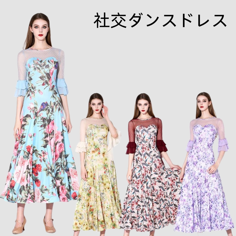 社交ダンスドレス 社交ダンス衣装 スタンダード ドレス レディース ダンスドレス レディース 競技ダンス 発表会 コンテスト コンクール フラワー衣装 モダンダンス 衣装 開場ドレス