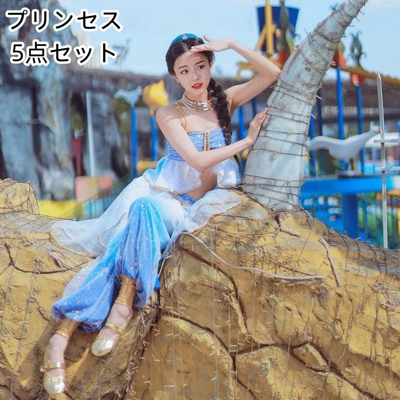 キッズ コスチューム cosplay ベリーダンス衣装 5点セット 女の子 インディアン インド アラビア 衣装 子供 ベリーダンス仮装 ダンス ハロウィン 仮装 学園祭 演出服 halloween