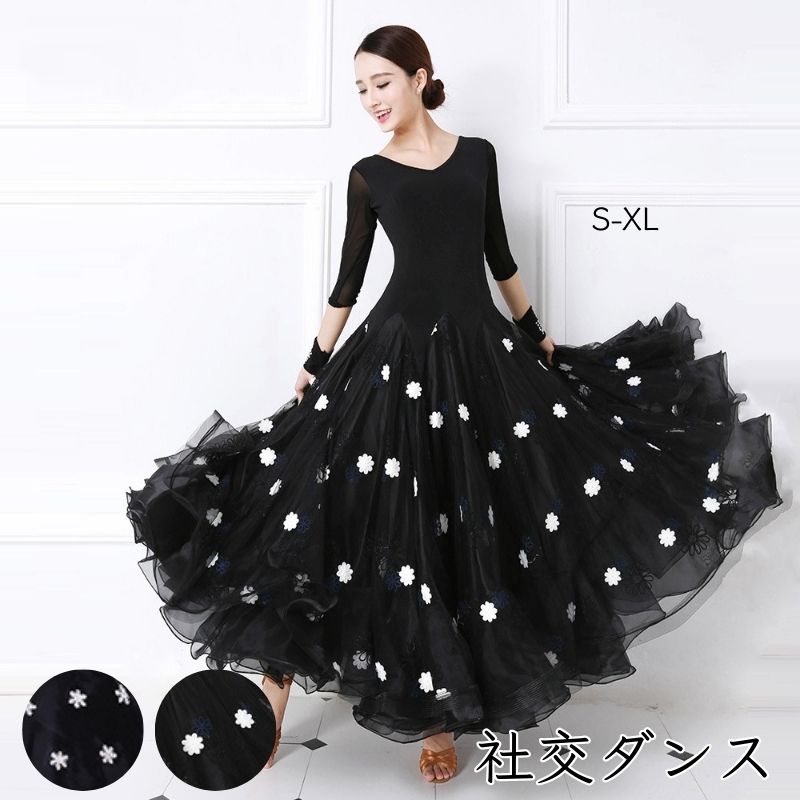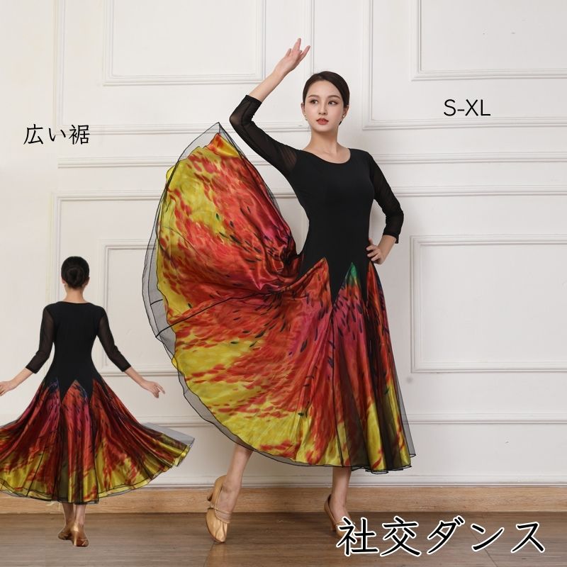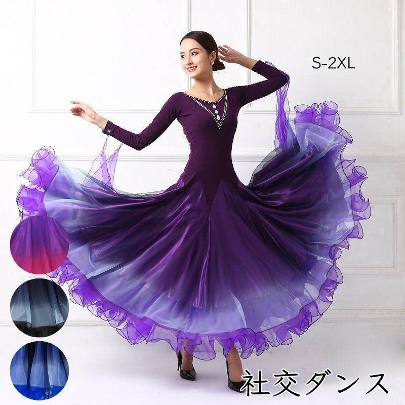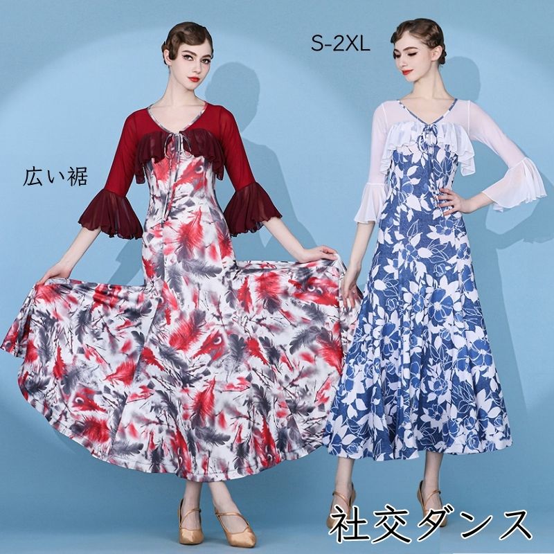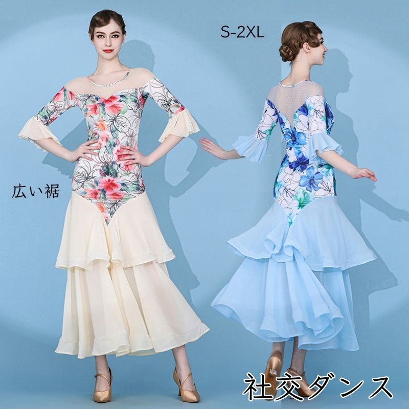 社交ダンス レディース ダンスドレス 衣装 ワルツ ワンピース イベント 大きい裾 モダン ドレス 社交ダンス衣装 広がる裾 スタンダード レッスン着 演出用 高級感 踊りドレス 大人気