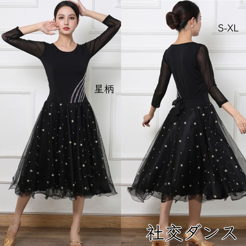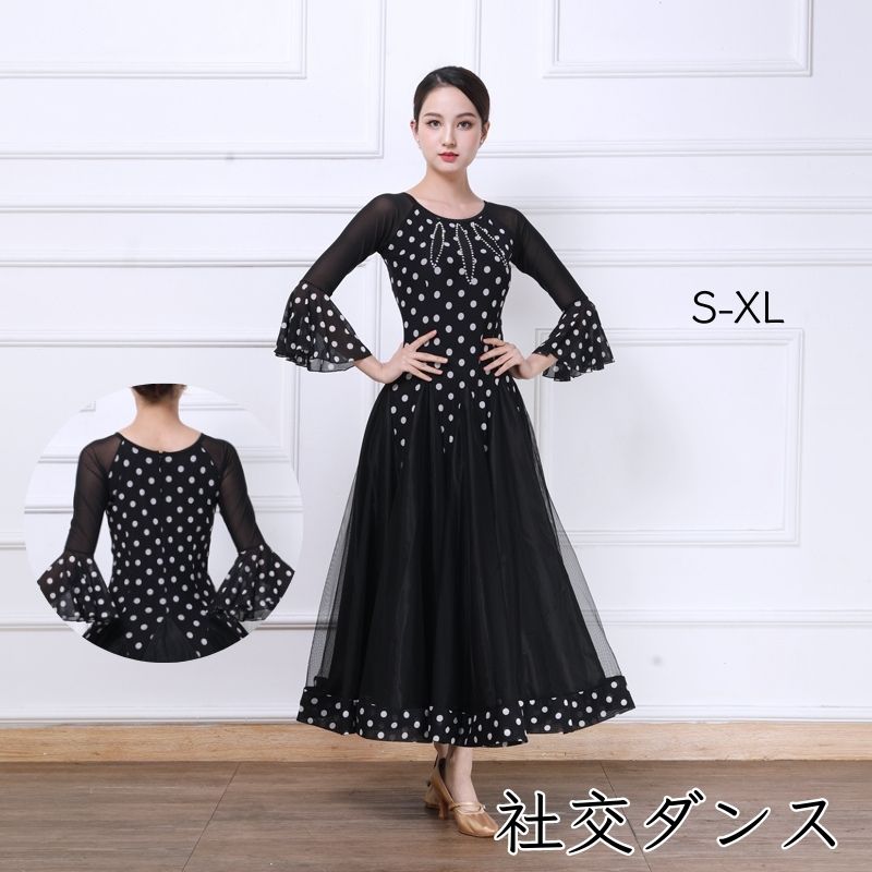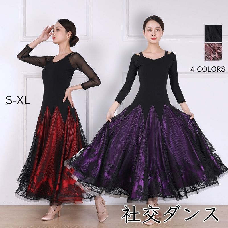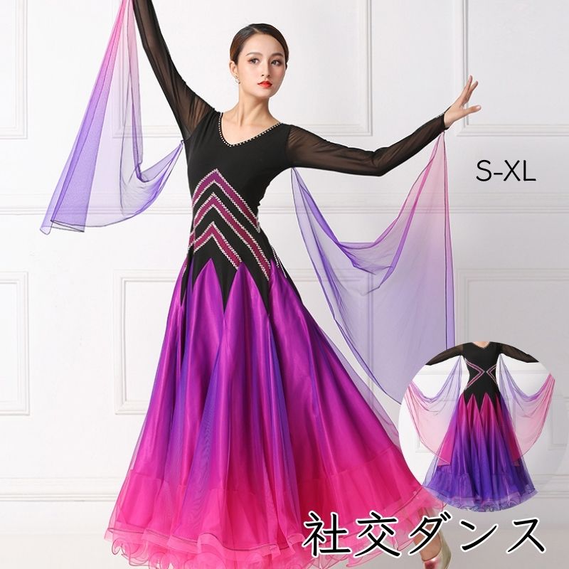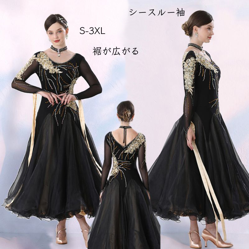 社交ダンス レディース ダンスドレス 衣装 ワルツ ワンピース イベント 大きい裾 モダン ドレス 社交ダンス衣装 広がる裾 スタンダード レッスン着 演出用 高級感 踊りドレス 大人気