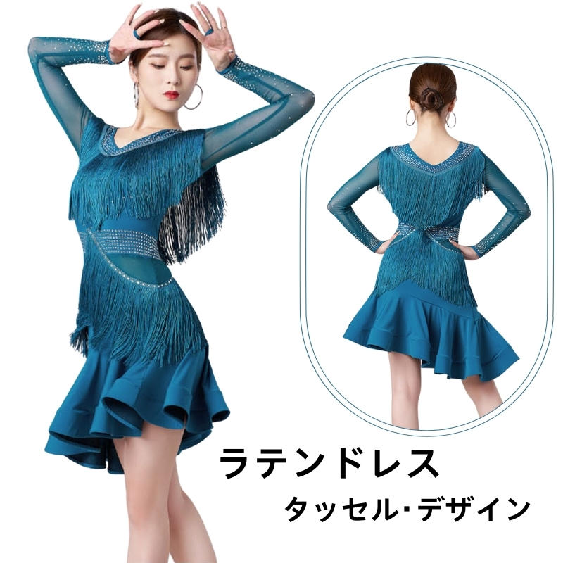 長袖 背が見せ ラテンダンス 痩せラテン衣装 発表会用ドレス ワルツ ラテン系 ダンスドレス ワルツ用 発表会用 競技ダンス 豪華 イベント テン専用ドレス レッスン着 練習用 ラテンドレス