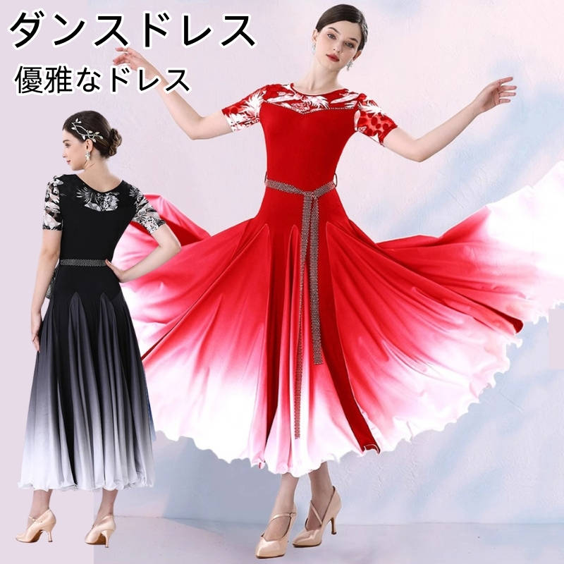 社交ダンス レディース ダンスドレス ワルツダンスドレス大きい裾ワルツに向きセクシーな踊りドレス ダンスドレス 舞踏 踊り ドレス 発表会用ドレス ワンピース 舞台服 社交ダンスドレス