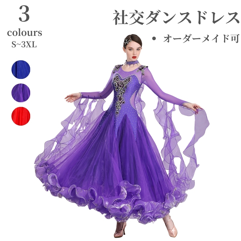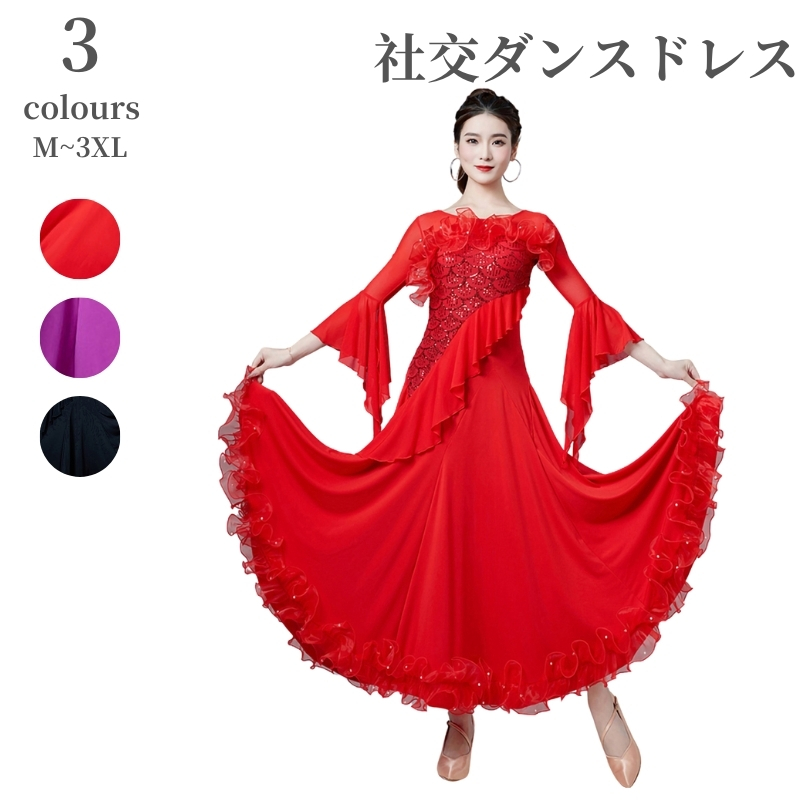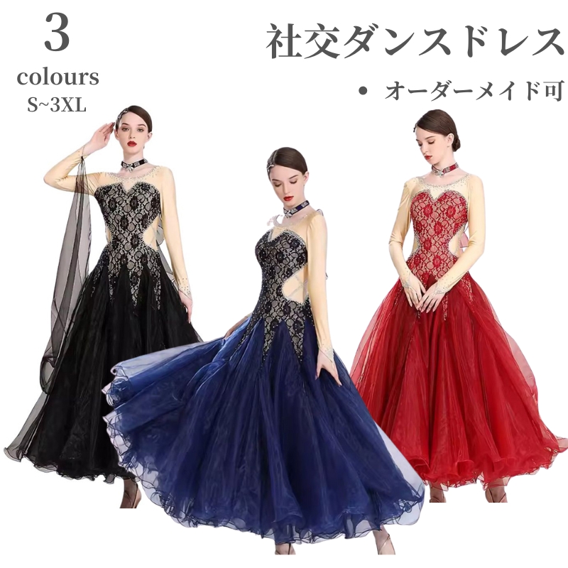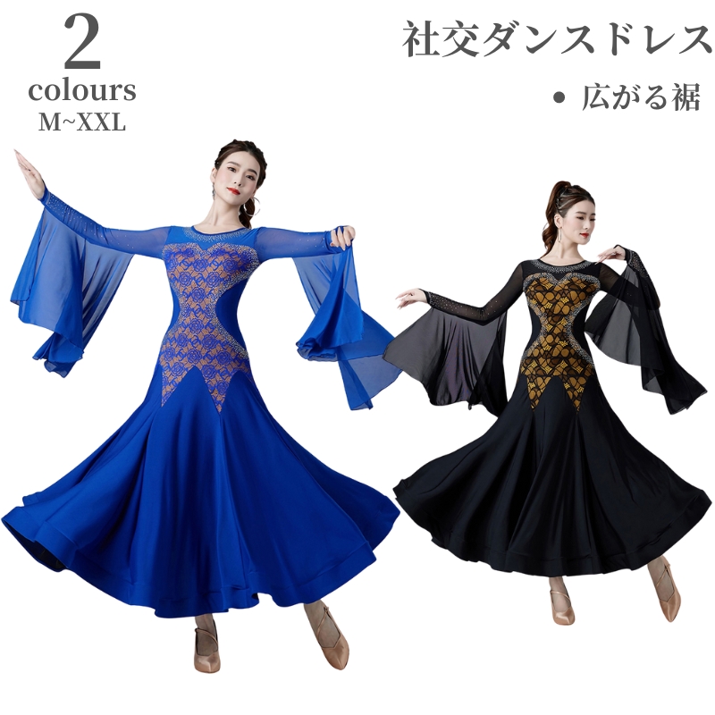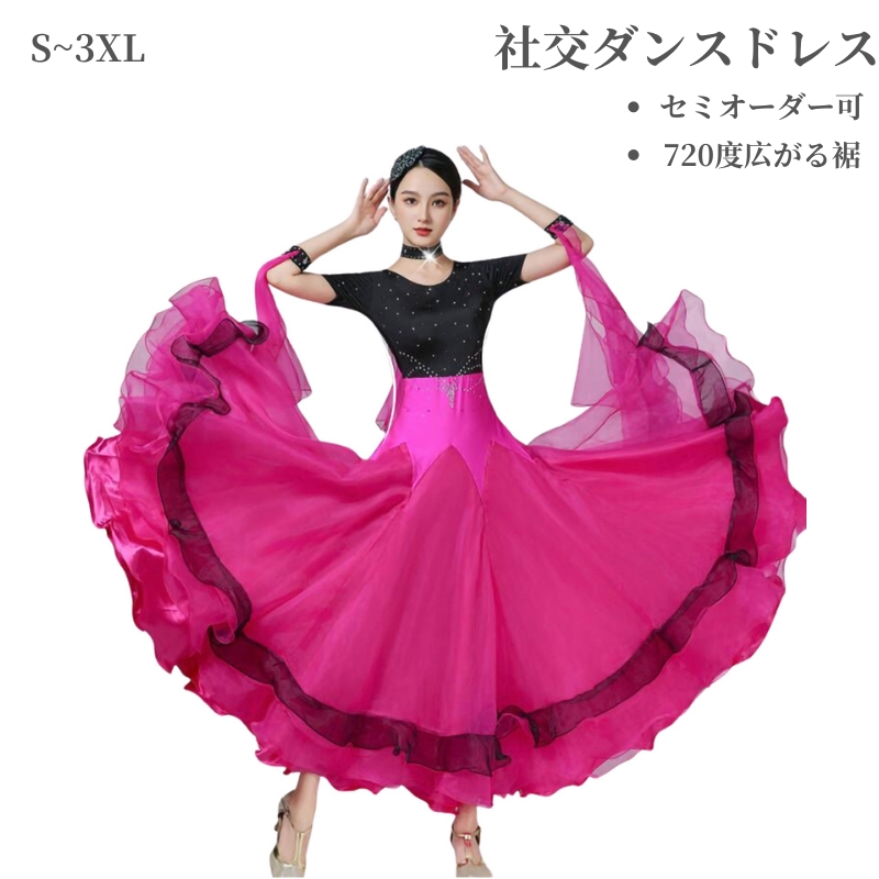 社交ダンス レディース ダンスドレス 衣装 ワルツ ワンピース イベント 大きい裾 モダン ドレス 社交ダンス衣装 広がる裾 スタンダード レッスン着 演出用 高級感 踊りドレス 大人気