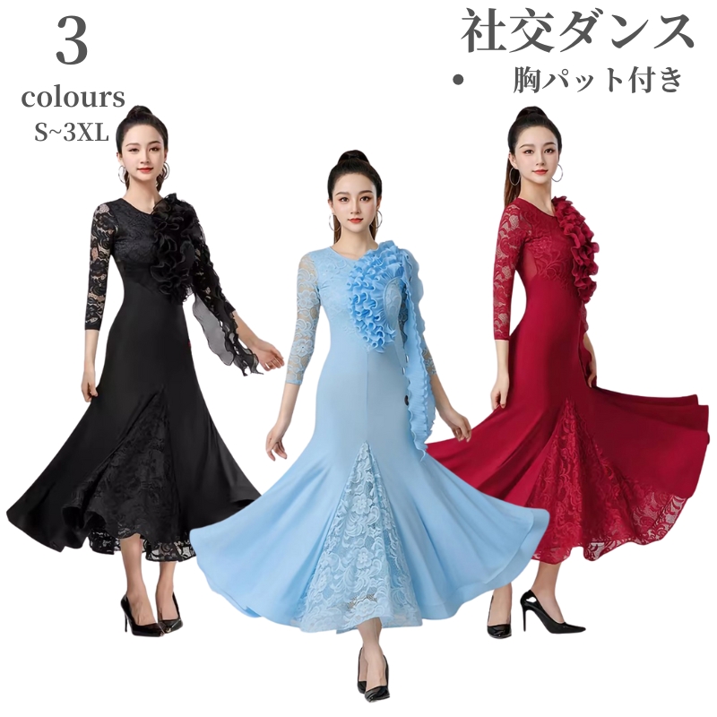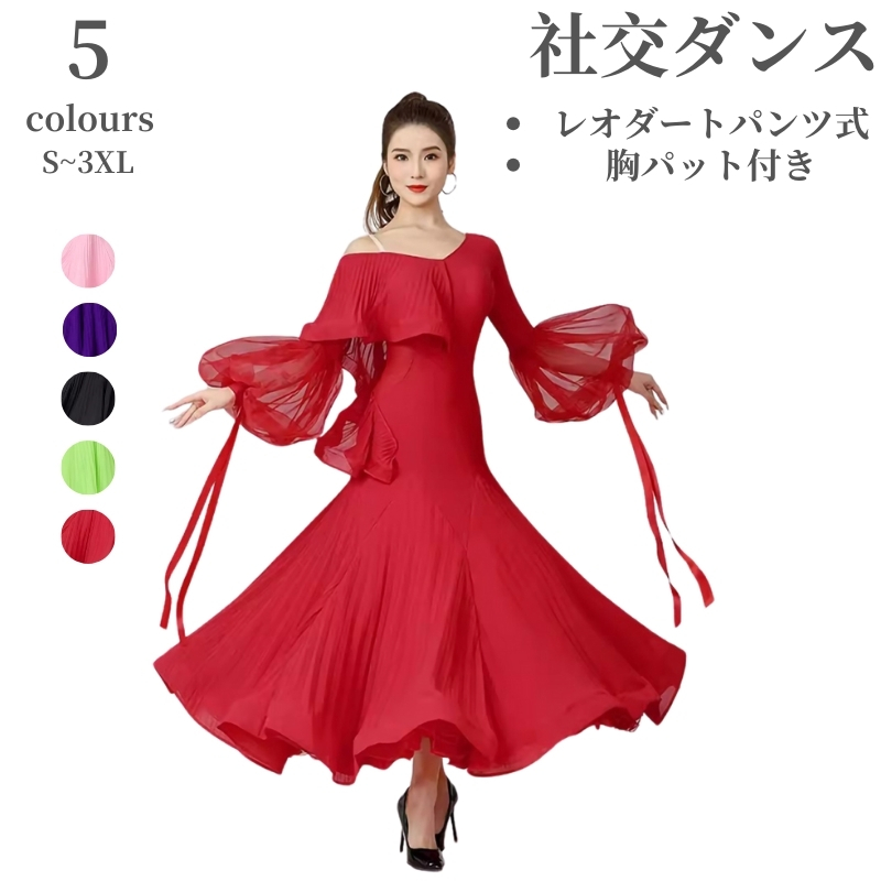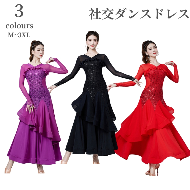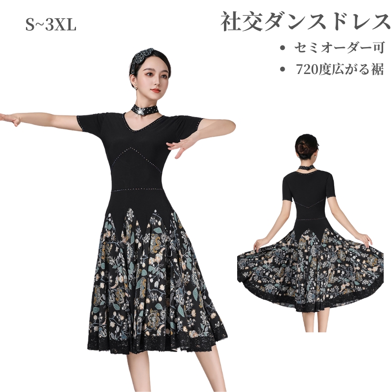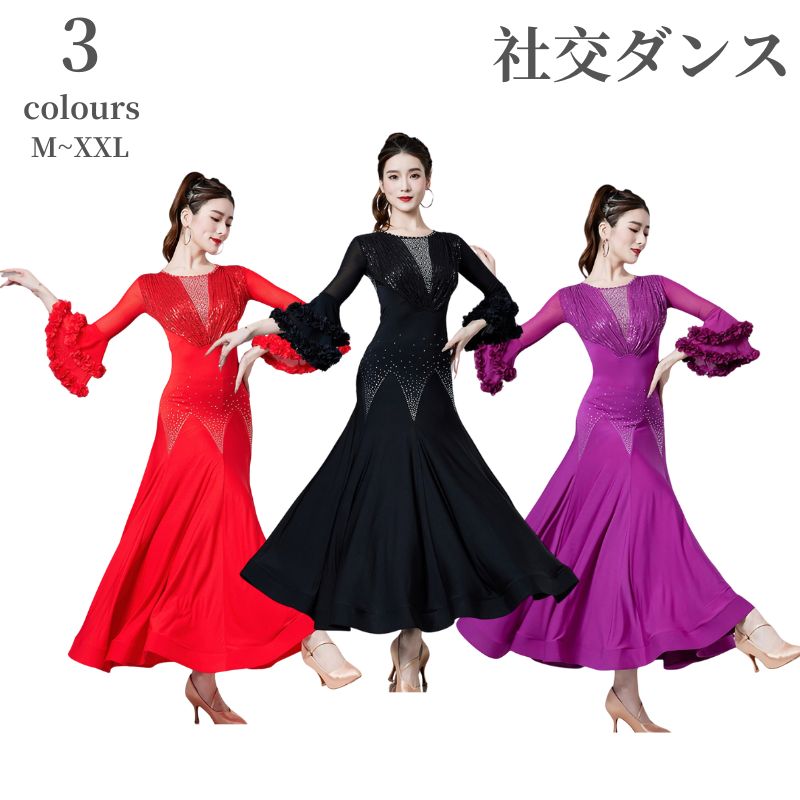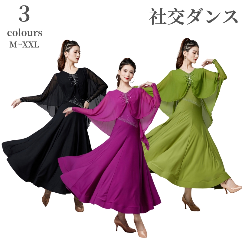 社交ダンス レディース ダンスドレス 衣装 ワルツ ワンピース イベント 大きい裾 モダン ドレス 社交ダンス衣装 広がる裾 スタンダード レッスン着 演出用 高級感 踊りドレス 大人気