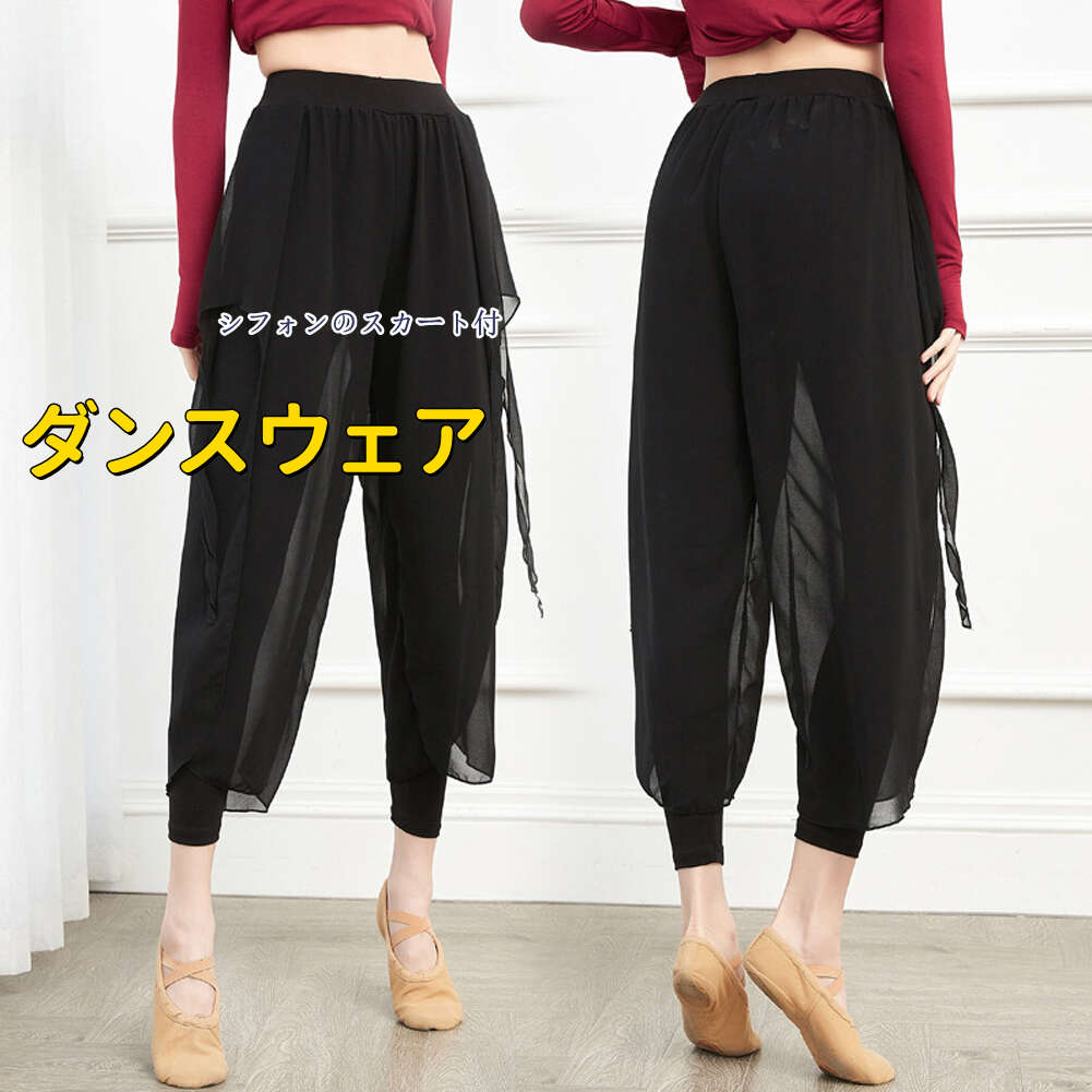 ダンスパンツ レディース ワイドパンツ ガウチョパンツ ロング丈 ウエストゴム ボトムス ダンス着 ジャズダンス バレエパンツ ヨガパンツ ダンスウェア 踊りパンツ 社交ダンスパンツ